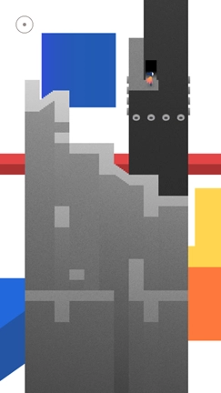 接下来我们进入了第四个场景,这个场景呈现出明显的二维感,和之前的立体场景画风差异较大,带有像素风格。视觉上看起来行走似乎有些难度,但不必担心,方法还是之前的方法,只要仔细按照攻略前进,依然能够顺利通过~
