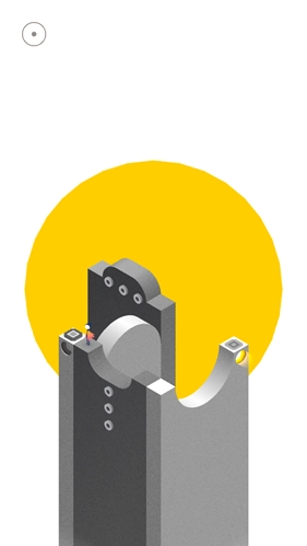 再沿着逆时针方向转动画面下方四周带有圆点的可移动模块,直到整座建筑物成为下图中所示的样式,接着让人物走入门中。