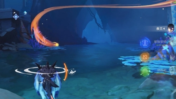 3、踏入水域后,魂附鳍游龙触碰到水中的铭印,随后依据铭印折返。