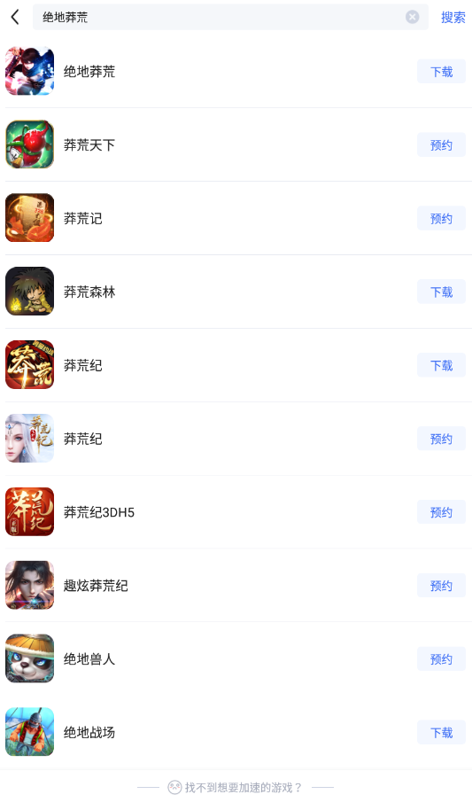 打开Biubiu加速器后,在顶部的搜索框里输入想找的游戏名称“绝地莽荒”,下方随即会呈现搜索结果,找到该游戏后点击其右侧的下载按钮,就能启动下载流程了。