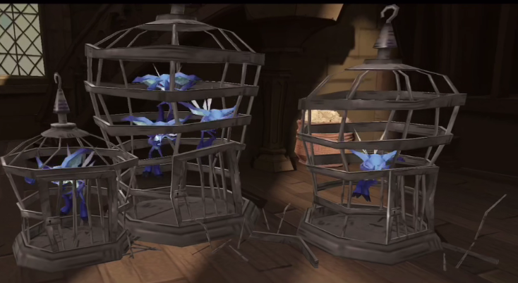 接下来,我们就要投入黑魔法防御课的实战环节了。我们得用冻结咒去冻住那些血量不多的小精灵,把它们抓回笼子里。这里要留意的是,冻结咒对血量还很充足的小精灵不起作用,因此我们得先把它们的血量打低了再进行抓捕。