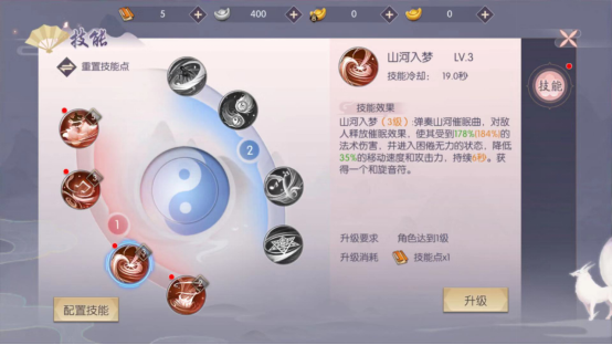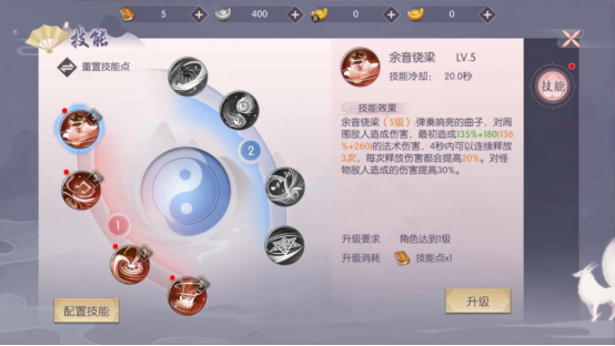 炫音拥有余音绕梁、高山流水、山河如梦、春江花月这四个技能。