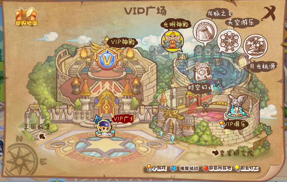 要找到水灵空间,首先得打开地图。洛克王国的地图默认打开时不会显示场景名字,不太熟悉地图的小伙伴可以开启场景名称显示功能,这样找起来会方便很多。而进入水灵空间的前提,是先进入VIP广场。