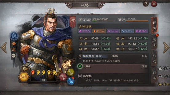 21、满宠:治疗能力非常强的武将,由于是指挥战法,因此还不怕控制,T0级太尉盾可少不了他。
