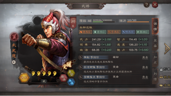 23、太史慈:很强的输出兼辅助武将,拥有稳定的连击能力,可以搭配各种突击战法使用。