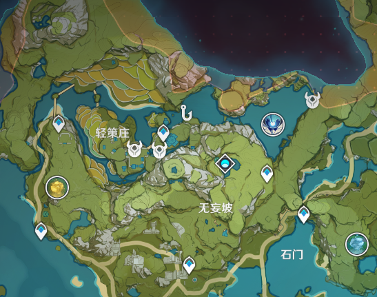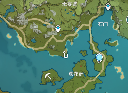 4:望风山地,也就是无相之风东南方向的那条河流处设有一个钓鱼点。