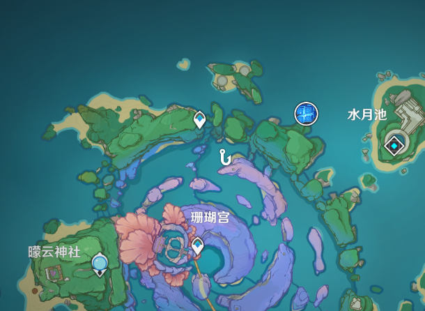 1-2:碧水原北部传送点附近的岛屿群设有两处钓鱼点。