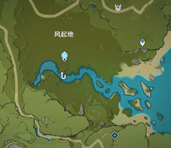 6:风起地在温迪神像的正南方河流有一个钓鱼点。