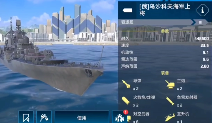 要是想拥有一艘战力相对更强的船只,乌沙科夫号会是不错选择。该船各方面能力较为均衡,尽管防空能力不算突出,但前期使用完全没问题,整体性能相当出色,十分推荐平民选用。不过要留意,这艘船的导弹数量较少,不太适合过于激烈的战斗。