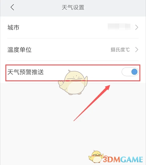 4、进入天气设置页面,点击开启【天气预警推送】功能即可。