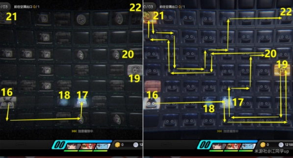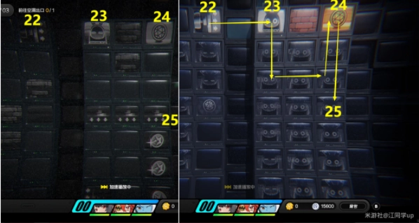 7、首先开启【红外摄像头】,前往17区打怪,待打开18区的门后,关闭【红外摄像头】。之后前往18 - 17 - 19区,紧接着按顺序前往17 - 20 - 21 - 22区,随后跳转至右边的23区。