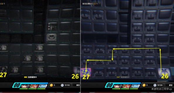 6、首先开启【红外摄像头】,接着去攻打13区域的怪物,待打开14区的门之后,关闭【红外摄像头】,随后从15区弹跳到16区。