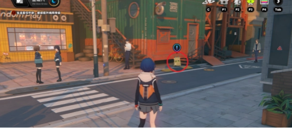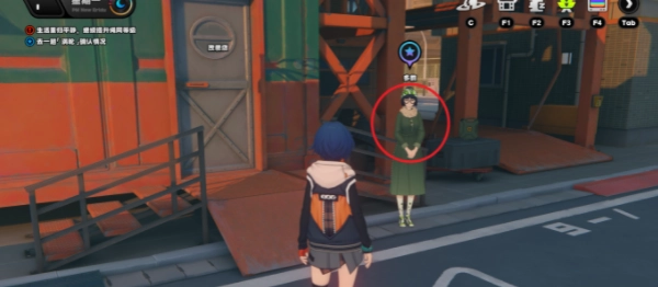 1. 完成前置任务《救救锟斤拷》后,前往六分街,在改装店的左边,于下图所标注的位置找到邦布并与之对话,接取委托【作战:救救锟斤拷】。