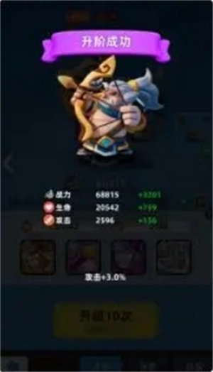 武将升阶:通过消耗武将进阶石,来提高武将的等级上限。要知道,武将的等级直接决定其战力上限。所以,当招募到心仪的英雄时,别急着让他立刻上阵杀敌。毕竟,只招募士兵却不加以演练,可是很容易被其他主公击败的。