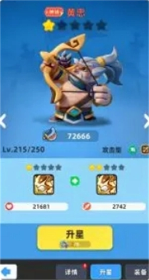 武将升星:通过消耗对应武将的碎片,来提升武将的星级。武将成功升星后,不仅能够解锁武将技能,还能提升技能等级。
