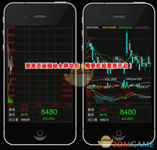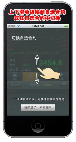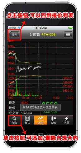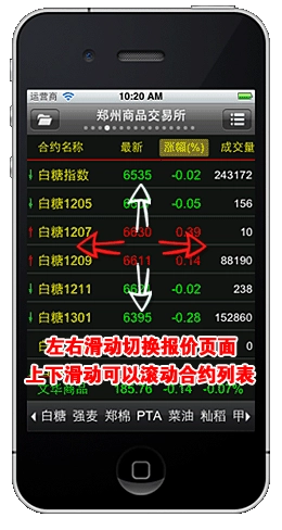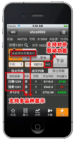 点击某合约报价,即可进入图表窗口。在该窗口中,通过左右滑动操作,能够在详细报价、分时图、K线图以及下单页面之间进行切换。如需更多说明,可查看以下图示。
