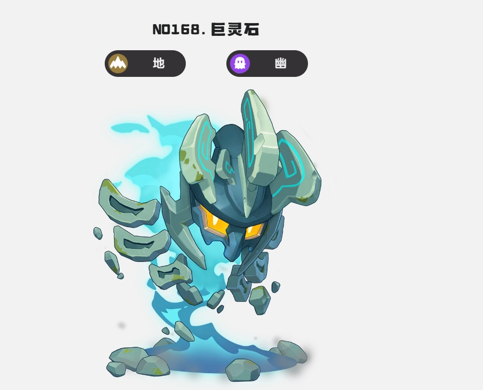 巨灵石是地系精灵,种族值达543 。它能于大地汲取强大能量,还能用土系魔法操控土壤与石头。在游戏里,它不仅能收集土壤,甚至会把石块当作零食。身为地系精灵,巨灵石防御值颇高,战斗时抗击打能力出众。