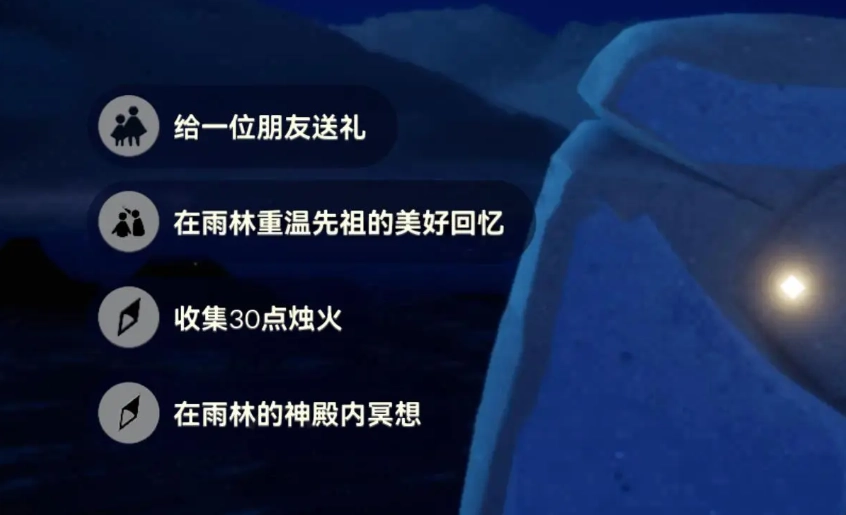 2. 收集靠近地图中央点燃蜡烛上方的烛光,或者净化黑暗植物后的烛光,收集30滴即可。