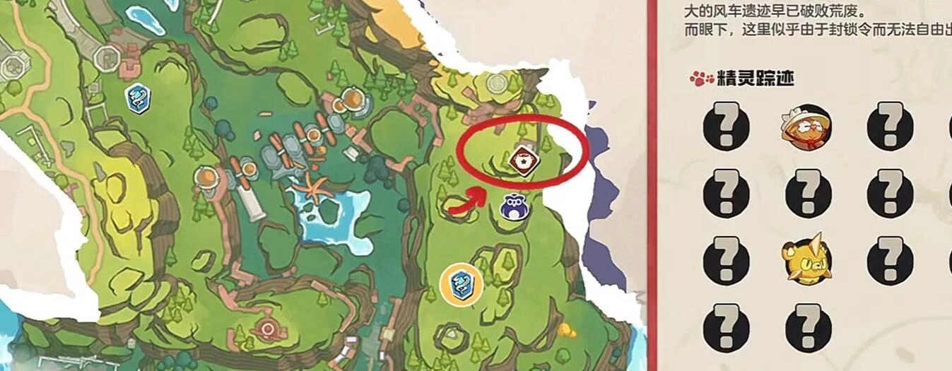 那位教师身处皇家办事处左上方的瀑布区域。玩家要传送到皇家办事处的魔力之源,朝着地图左上方行进,走过石桥,就能看到瀑布下方的平台。教师的模型是一个手持魔法书的黑袍 NPC ,与之对话便会触发战斗,建议选用火系或机械系精灵来应对其草属性阵容。