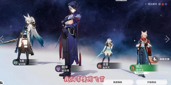 1、进行挑战前,需拥有飞霄、椒丘、貊泽这三位角色,或者具备其中两位角色。
