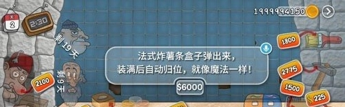 3、4050金币:花费4050金币对薯条自动化进行升级,点击纸盒便能自动装满。