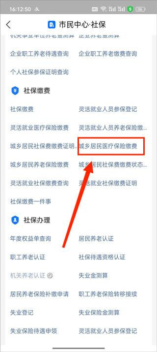 进入社保系统后,找到社保缴费相关模块,接着选择【城乡居民医疗保险缴费】选项。