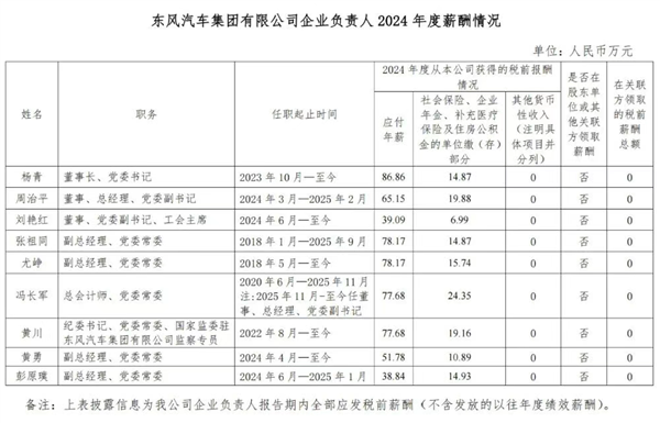 其中,中国一汽董事长邱现东的应付年薪是90.97万元,该薪酬涵盖了社保、企业年金等单位缴存部分,这部分对应的金额为16.17万元。东风汽车集团董事长杨青的应付年薪为86.86万元,单位缴存的社保、年金等相关部分金额是14.87万元。