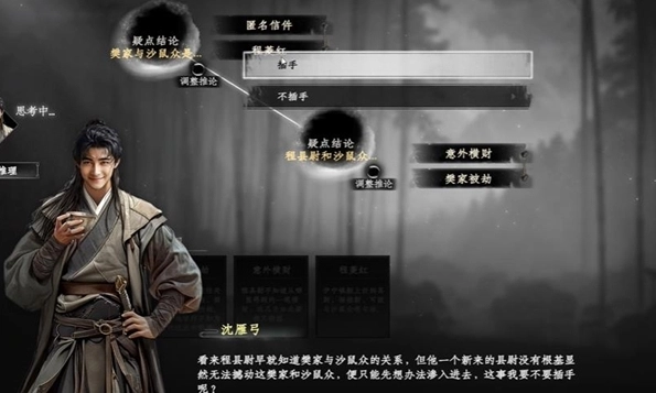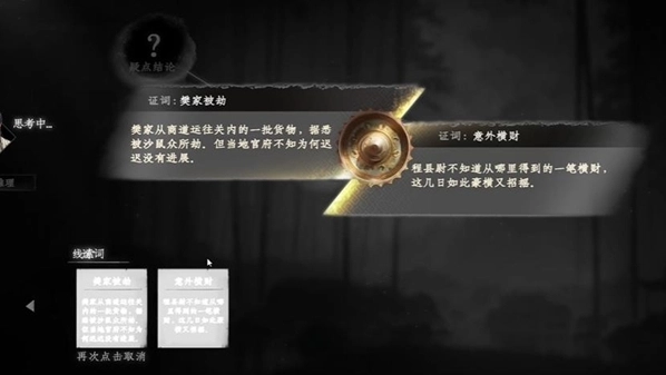 4、当开启匿名信件后,即可解锁推理环节:将匿名信件与程红菱相关线索相结合,进而得出樊家与沙鼠相互勾结的结论。