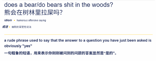 通过网络搜索能够了解到,这句话属于英语里的一句谚语,它的完整表述是“Does a bear shit in the woods?”