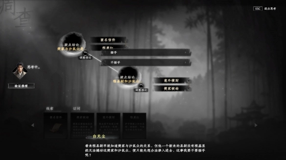 1. 第一步,玩家前往黑沙寨上方的伊梨镇,倾听npc老百姓之间的交谈,从而获取证词:樊家遭遇劫案以及意外获得横财(具体npc位置不太能记清了,首次前往时该情节很容易触发)。