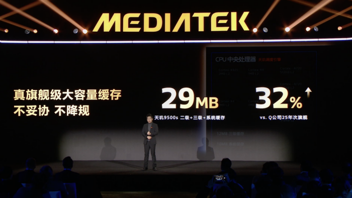 天玑9500s搭载3nm制程工艺,采用旗舰全大核架构,其八核CPU由1颗主频达3.73GHz的Cortex-X925超大核、3颗Cortex-X4超大核与4颗Cortex-A720大核组成,拥有总计29MB的大容量高速缓存(含7MB L2缓存、10MB L3缓存及10MB系统缓存),配合旗舰级天玑调度引擎,助力终端设备全面释放强劲性能与出色能效。