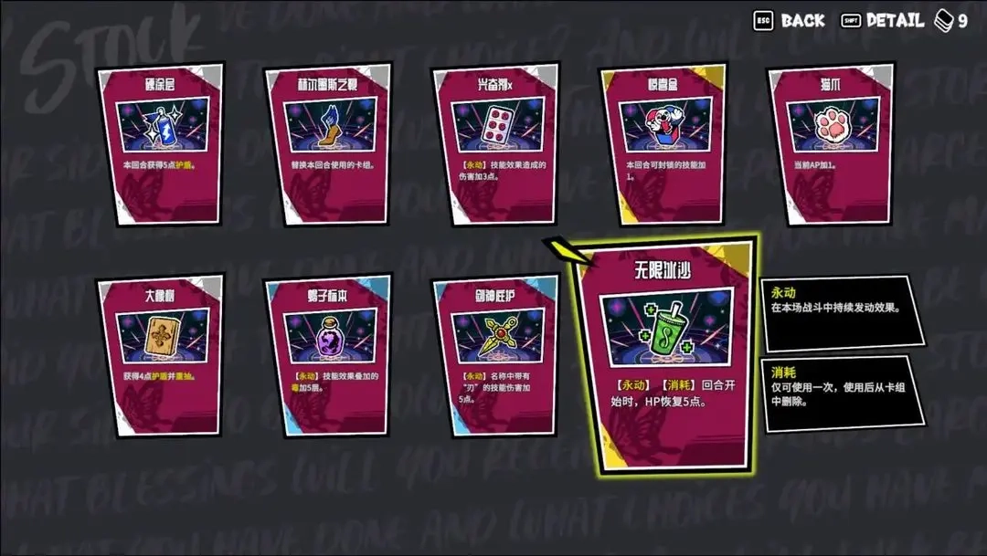 玩家在关卡地图里会碰到战斗、商店、事件之类的各类节点,得仔细规划路线来保持血量和完善卡组。每场战斗结束后能得到临时或永久的道具卡,临时道具能提供本回合护盾这类即时助力,永久道具则可以逐步提升全局能力。怎样依据当下的战局和长期的构筑做出选择,是决策的核心所在。