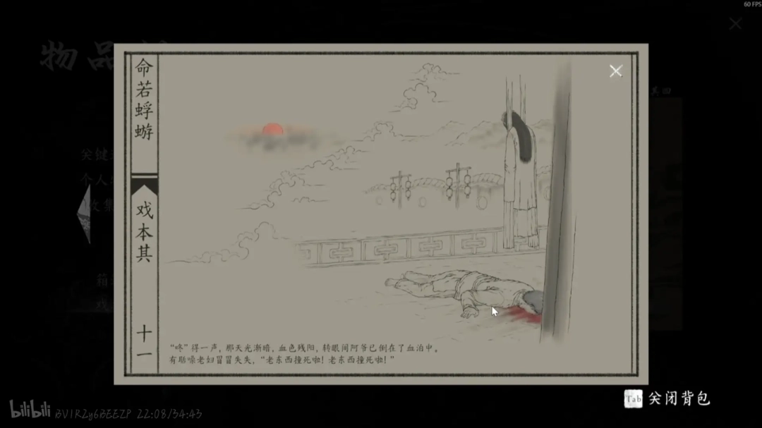 游戏里,借助散落各处的戏本《命若蜉蝣》,玩家得以窥见老乞儿与阿缘这对爷孙身为旧制度牺牲品的悲惨一生。他们的死亡——一个撞墙而死,一个悬梁自尽——决绝又惨烈,那深入骨髓的怨恨,实在令人心惊。不过游戏的高光时刻,在于阿缘最后的抉择:她没有落入“讨替身”的冤冤相报循环,而是将无尽的怨愤,转化为一场针对所有压迫者、不惜同归于尽的复仇绝响。