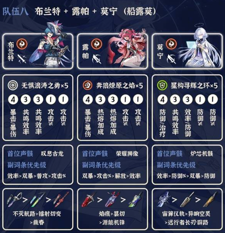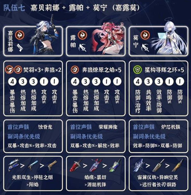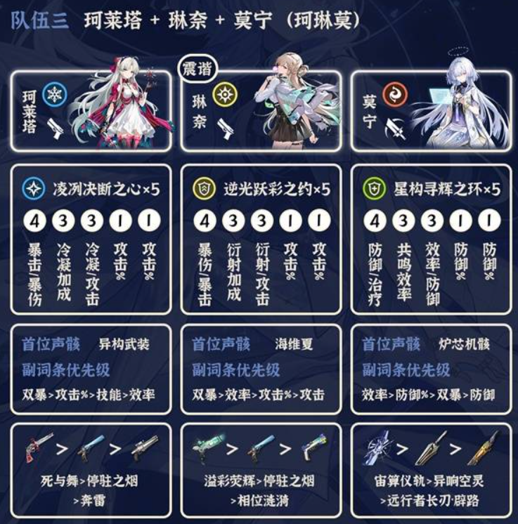 主要是搭配共鸣解放C,相里可以换成卡卡罗、千咲或者露帕,这几个都可以。