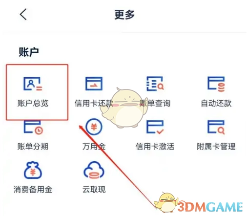 5、开启更多功能之后,点击账户总览的功能图标。