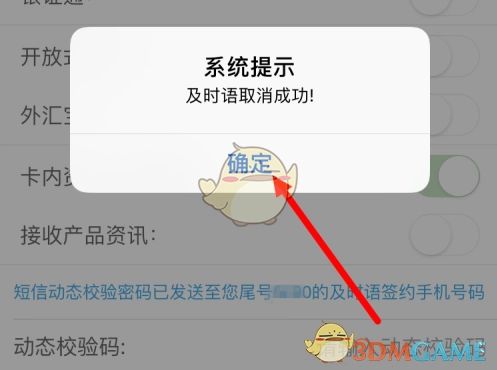 7、完成上述步骤后,屏幕上会出现“及时语取消成功”的提示,此时操作即已完成,只需选择提示中的“确定”按钮即可。