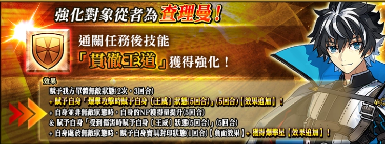 此外,于2025年12月31日(三)04:00至2026年1月8日(四)03:59期间,每日的首次登入游戏,将播放附带来自「查理曼」语音的登入剧情。当登入剧情播放结束后,可以领取对应活动奖励,包含呼符、占星茶壶及指令纹章「★4(SR)揭示王威的辉剑」等。
