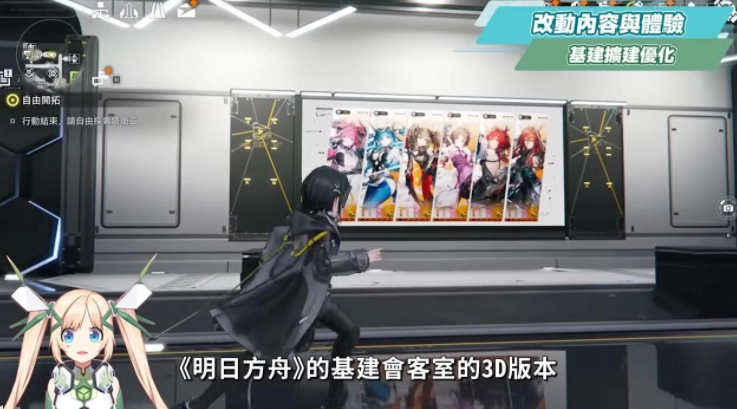 在基建部分新增了管理员会客室,这个会客室有点像《明日方舟》基建会客室的3D版本,里面可以展示自己的刻蚀章、干员履历,以及干员提升潜能后获得的留影大海报,好友参观时都能看到这些内容。
