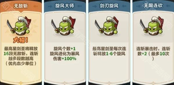 剑圣的大招【无敌斩】毫无疑问要优先选择,而在流派的挑选上,鉴于这一关的难点主要集中在小怪身上,所以更推荐走剑刃旋风流,通过强化旋风技能来提升剑圣清理小怪的速度和效率。
