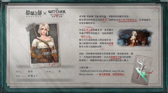 联动活动期间,《巫师3:狂猎》角色的经典装备将再度登场,四把联动装备中可任选一把享受概率提升。该投影为「异界神兵・巫师3」限定投影,其保底机制与其他投影活动完全独立,互不干扰。参与【巫师之选】投影活动获取的传说装备,均为「异界神兵・巫师3」联动装备,不会出现非联动的传说装备。