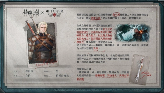 「杰洛特」是能力全面的狩魔大师,透过使用多种类型的魔药,能强化自身进攻或生存能力;