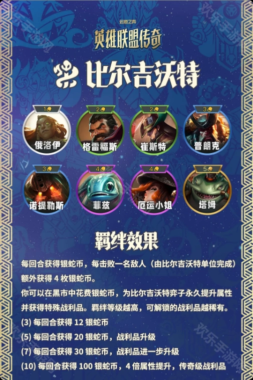 新羁绊比尔吉沃特的核心玩法是“靠击杀夺财,去黑市采购”。弈子在击败敌人后会获得“银蛇币”,可用于在每回合刷新的黑市中购买物品。