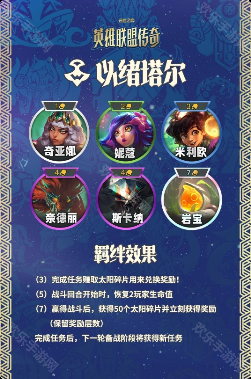 3. 新娱乐羁绊:以绪塔尔的“任务收菜”,任务爱好者的福音 另一个娱乐向羁绊以绪塔尔,本质是一套“任务系统”——比如完成“让棋子存活到战斗结束”“造成指定伤害量”这类目标,就能获取“太阳碎片”作为奖励。而收集碎片的核心目标之一,就是攒够500个碎片,直接兑换前文提到的7费卡岩雀。这给了不偏好“连败收菜”玩法的玩家,一个全新且更具主动性的成长路径。