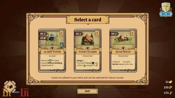 游戏的卡牌构筑系统十分丰富,能为你在争权夺势的道路上提供有力支持。80多张卡牌各有独特的升级项目与助力效果,是你建造和强化建筑时的可靠助手。其中,建筑类与科技类卡牌可带来特定额外奖励,比如提升征兵效果等,为你的发展解锁更多可能。卡牌选择多样,你可依据自身战术来构筑卡组,推动领地繁荣发展。在每局游戏过程中,你还能在不同阶段与市场公会进行交易,换取有价值的资源,再合理利用这些资源升级卡组、优化策略,从而选择下一轮的发展方向。