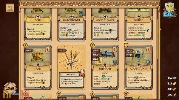 这里分布着繁茂的森林、奔腾的河流与萋萋的草原,只有对土地进行合理规划,在各异的地貌旁建造最适配的建筑,才能最大程度地发挥材料的效用,构筑起繁荣兴旺的公国。填满一行能够获取加成,不过游戏的最终目标是逐步收集各类资源。拥有这些资源后,才能慢慢扩充军队力量,抵御来犯的敌军,为国家筑起坚实可靠的“护盾”。