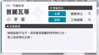 普丽瓦蒂是《胜利女神:妮姬》里的SSR狙击角色,身为火力型角色,她还具备相当出色的辅助能力,很适合担任副C。那么,普丽瓦蒂的立绘究竟呈现出怎样的风格,又有着何种技能效果呢?接下来,就一同来了解下《胜利女神:妮姬》普丽瓦蒂的技能攻略吧。