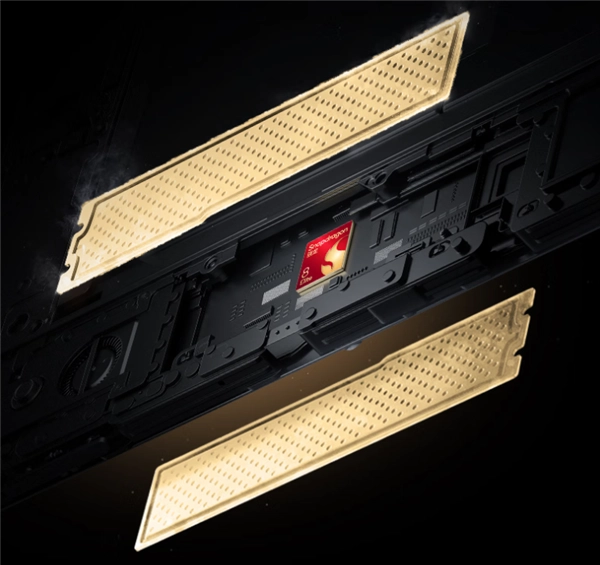 最关键的是,散热VC上运用了镀金工艺,显著提高散热效率,再配上转速可达20000转/分钟的驭风2.0涡轮增压风扇,助力骁龙8至尊版达成持续的满血性能释放。
