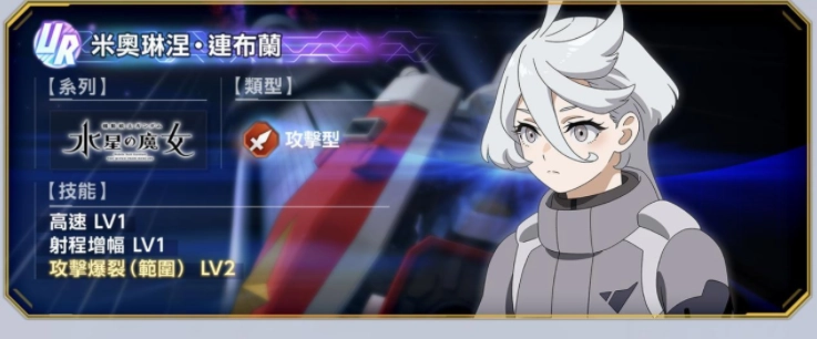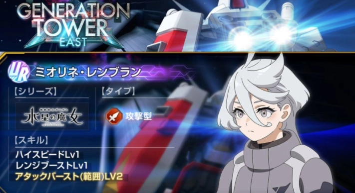 更值得关注的是,只要在本次世代之塔「EASTTOWER」中通关指定楼层,就能让UR驾驶员角色「米奥琳涅·连布兰」加入队伍!此次推出的UR驾驶员角色「米奥琳涅·连布兰」,来自2022至2023年首映的机动战士钢弹系列革新之作《机动战士钢弹水星的魔女》,是与主角苏莱塔·墨丘利共同构成故事核心的关键人物。不仅如此,作为本次世代之塔「EASTTOWER」限定奖励登场的她,还将以《机动战士钢弹水星的魔女》第一集中身着阿斯提卡西亚高等专门学园驾驶服的飒爽造型亮相!这无疑让包括笔者在内的《机动战士钢弹水星的魔女》粉丝们充满期待、心动不已。