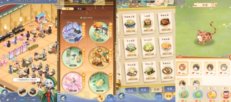 玩家将负责经营一家茶馆,能够自由布置茶馆的内部空间。游戏中提供了多种主题风格的装饰物品,无论是直接使用套装,还是偏好混搭风格,都可以根据自己的喜好来进行布置。游戏还融入了养成元素,玩家通过培养员工并进行合理指派,能够获得奖励并提升服务效率,从而进一步增强茶馆的经营能力。随着茶馆的持续发展壮大,最终可以形成规模更大的酒楼产业。仅仅专注于经营还不够,玩家还能在游戏中研发各类美食,打造充满梦幻色彩的喵乐园。在这里不仅可以和可爱的猫咪互动,还能把它们安置在茶馆里,打造出古代版本的猫咪茶馆。