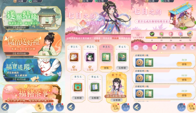 游戏今日正式上线,玩家不仅能领取事前预约福利,包括晋升简书×100、猫玉×100、遂愿壶×3和限定头像框×1,还能通过7日登录活动获取极品店员遥遥与珍品店员陆流苏,以及各类资源奖励。遥遥具备提升我方厨艺、增加店铺客流量的能力,同时拥有高速移动技能,可灵活应对持续涌入的顾客,是初期店员的优质选择。此外,玩家参与七日之约任务活动也能收获丰厚资源,累积完成任务更可领取傀戏开幕主题的精美家具。